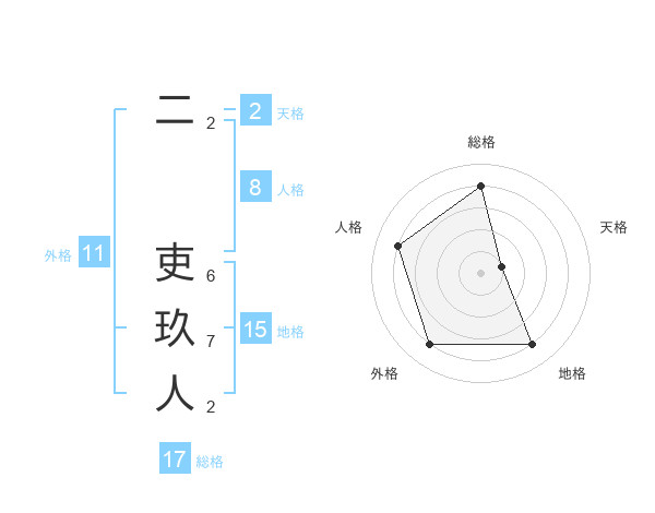 二 吏玖人さんの総格は17画の4点!