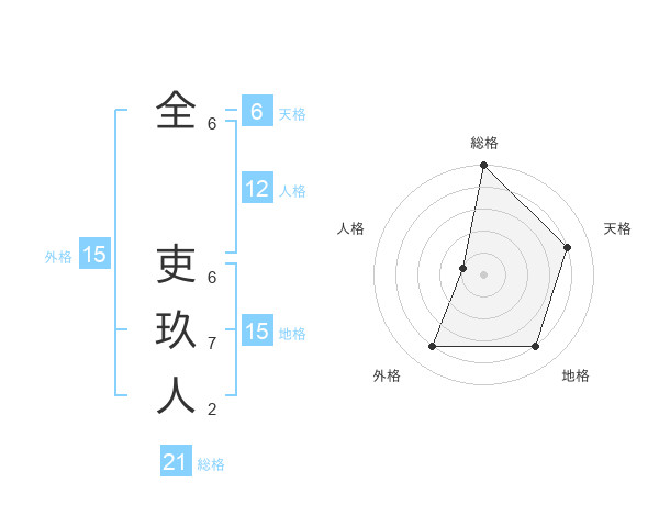 全 吏玖人さんの総格は21画の5点!