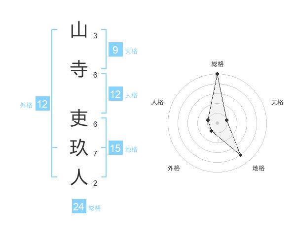 山寺 吏玖人さんの総格は24画の5点!