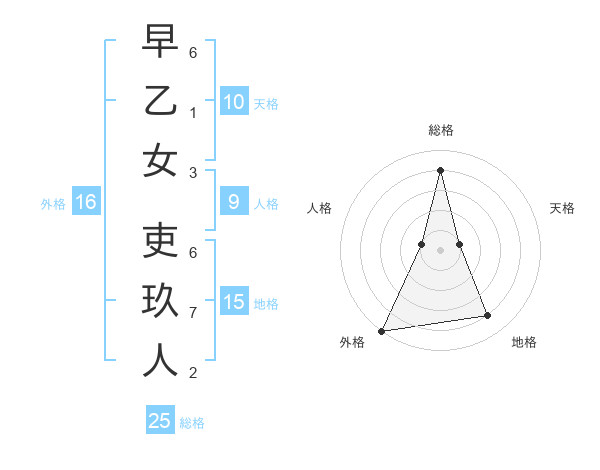 早乙女 吏玖人さんを姓名の画数から五運を鑑定