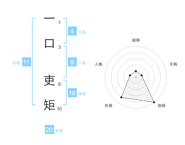 一口 吏矩さんの総格は20画の1点!