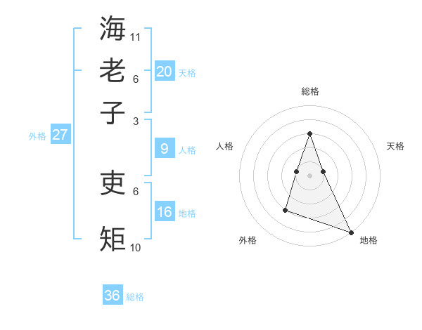 海老子 吏矩さんを姓名の画数から五運を鑑定