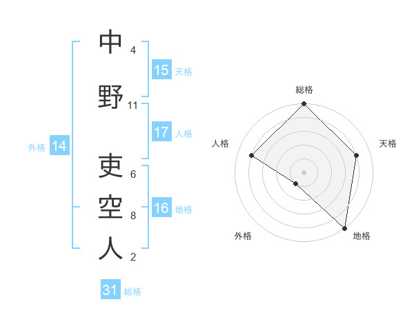 中野 吏空人さんを姓名の画数から五運を鑑定