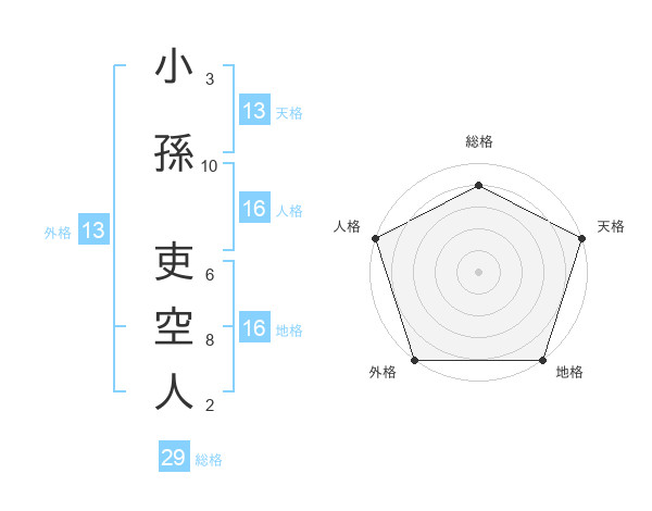 小孫 吏空人さんの外格は13画の5点!