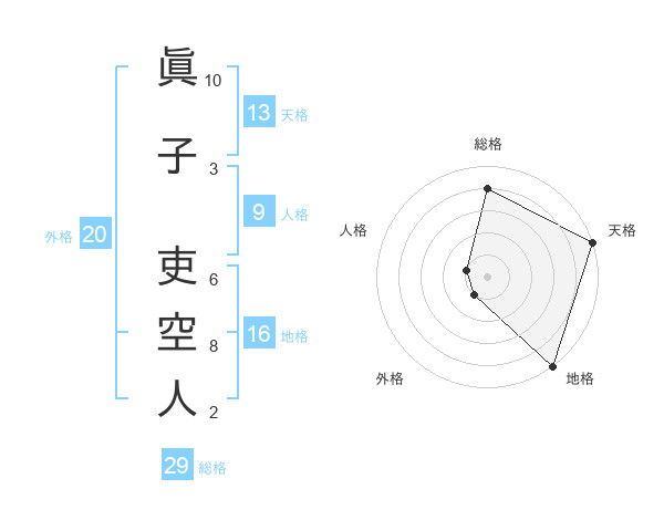 眞子 吏空人さんの総格は29画の4点!