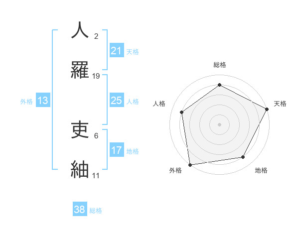 人羅 吏紬さんの外格は13画の5点!