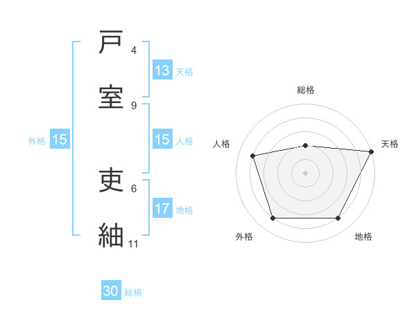 戸室 吏紬さんを姓名の画数から五運を鑑定