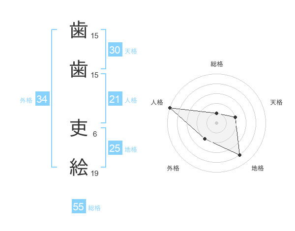 歯歯 吏絵さんを姓名の画数から五運を鑑定