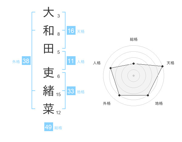 大和田 吏緒菜さんを姓名の画数から五運を鑑定