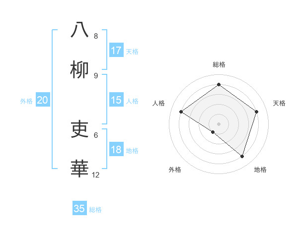 八柳 吏華さんの総格は35画の4点!