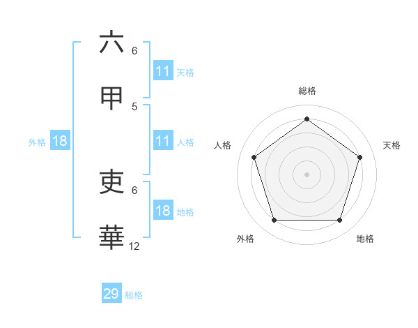 六甲 吏華さんを姓名の画数から五運を鑑定
