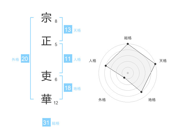 宗正 吏華さんの天格は13画の5点!