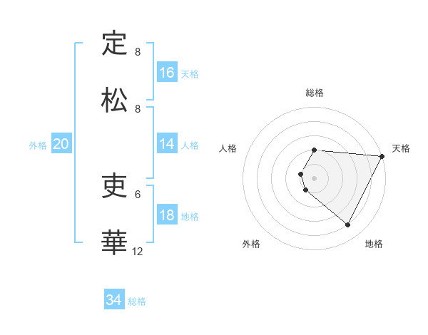 定松 吏華さんの天格は16画の5点!