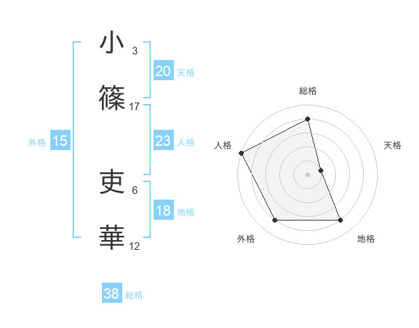 小篠 吏華さんの総格は38画の4点!