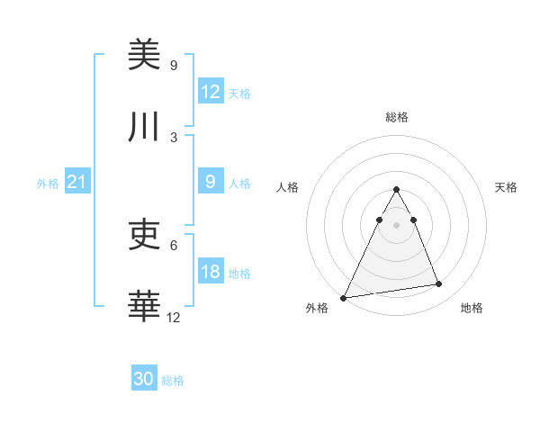 美川 吏華さんの総格は30画の2点!