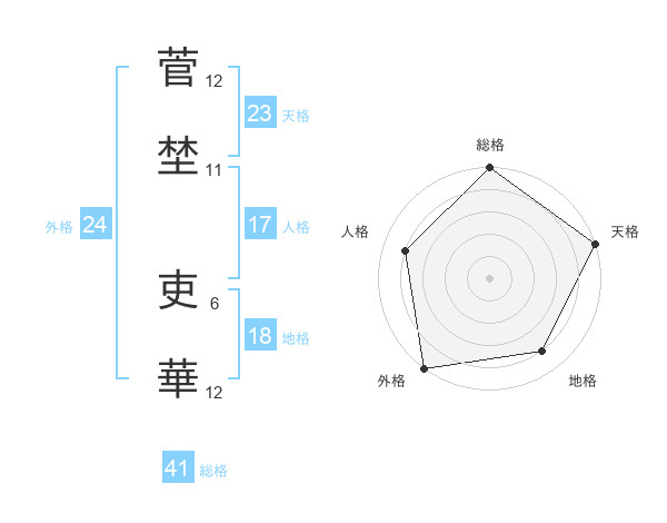 菅埜 吏華さんの天格は23画の5点!