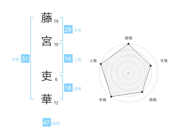藤宮 吏華さんを姓名の画数から五運を鑑定