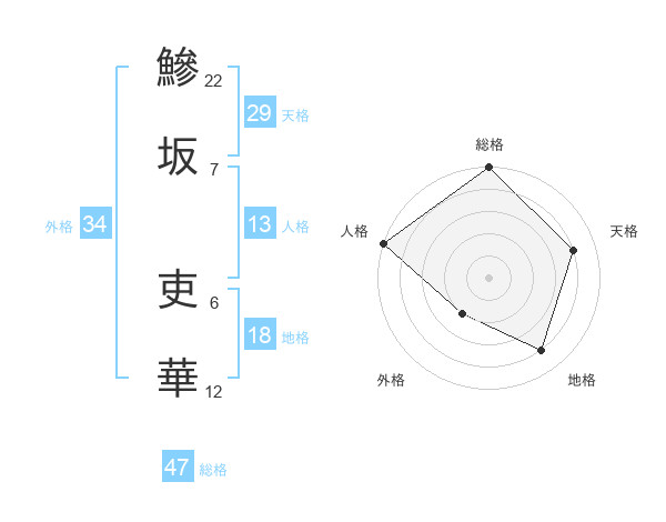 鰺坂 吏華さんの総格は47画の5点!