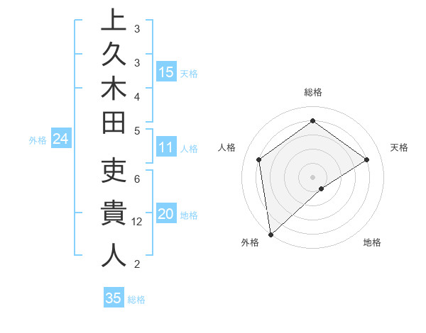上久木田 吏貴人さんの総格は35画の4点!