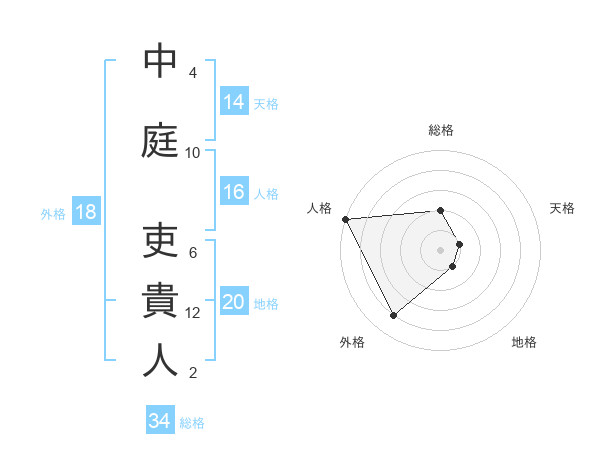 中庭 吏貴人さんの総格は34画の2点!