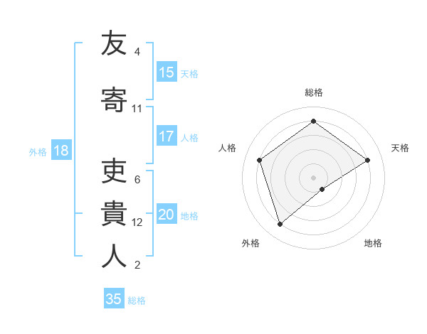 友寄 吏貴人さんの総格は35画の4点!