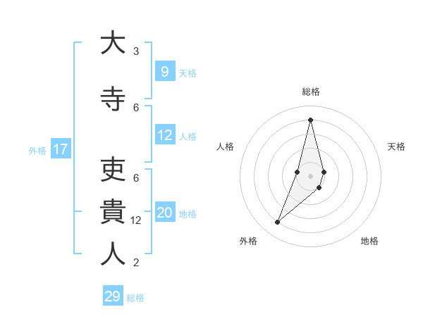 大寺 吏貴人さんの総格は29画の4点!