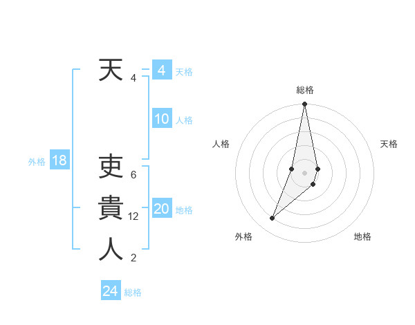 天 吏貴人さんを姓名の画数から五運を鑑定