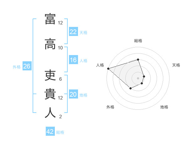 富高 吏貴人さんを姓名の画数から五運を鑑定