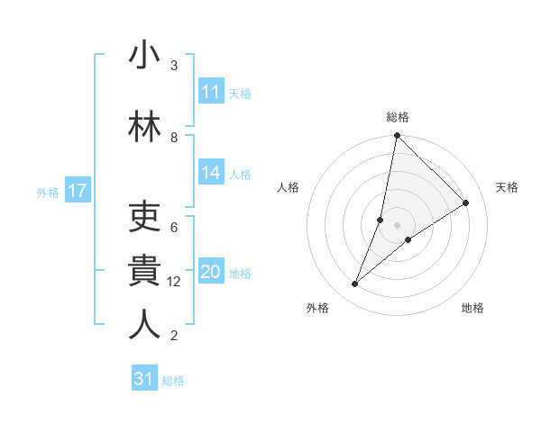 小林 吏貴人さんの天格は11画の4点!