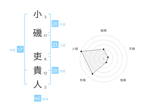 小磯 吏貴人さんの天格は20画の1点!