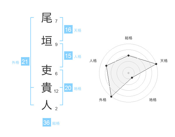 尾垣 吏貴人さんの天格は16画の5点!