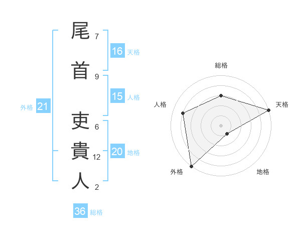 尾首 吏貴人さんの天格は16画の5点!