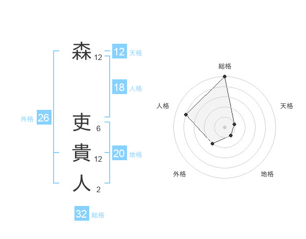 森 吏貴人さんを姓名の画数から五運を鑑定