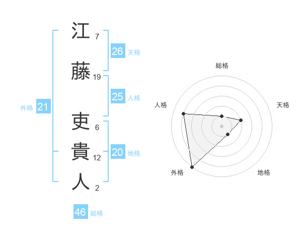 江藤 吏貴人さんの天格は26画の2点!