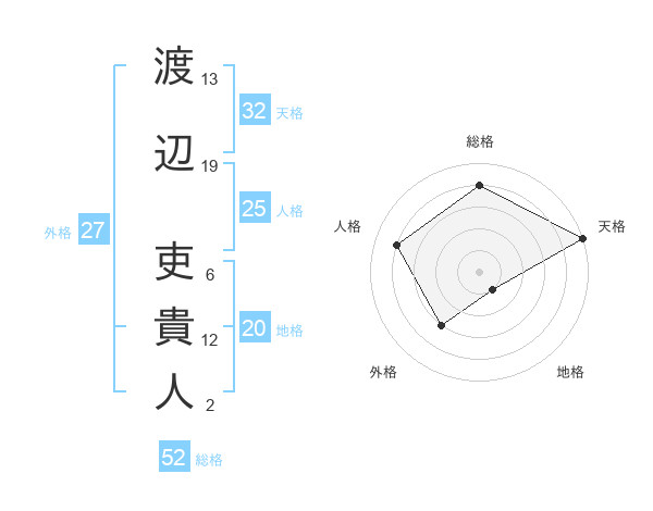 渡辺 吏貴人さんを姓名の画数から五運を鑑定