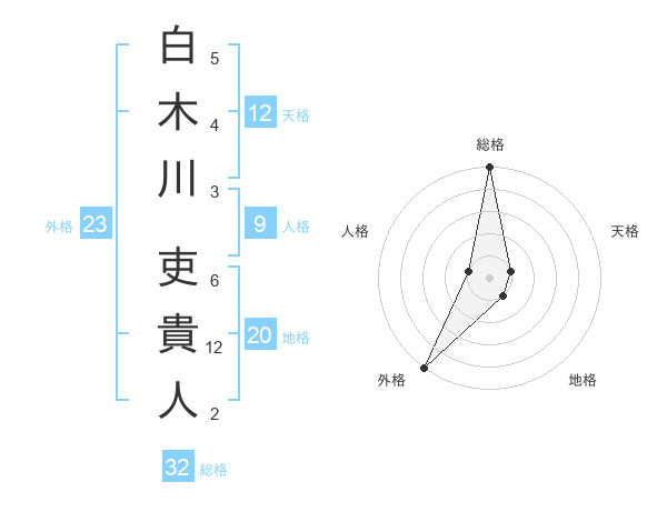 白木川 吏貴人さんを姓名の画数から五運を鑑定