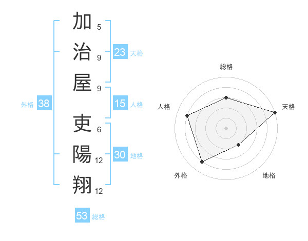 加治屋 吏陽翔さんの天格は23画の5点!