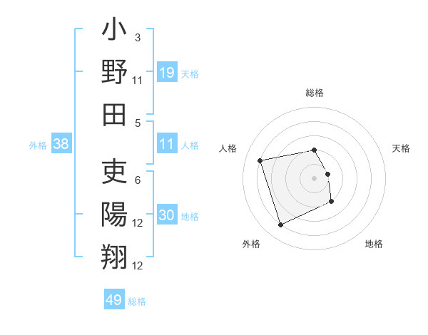 小野田 吏陽翔さんを姓名の画数から五運を鑑定