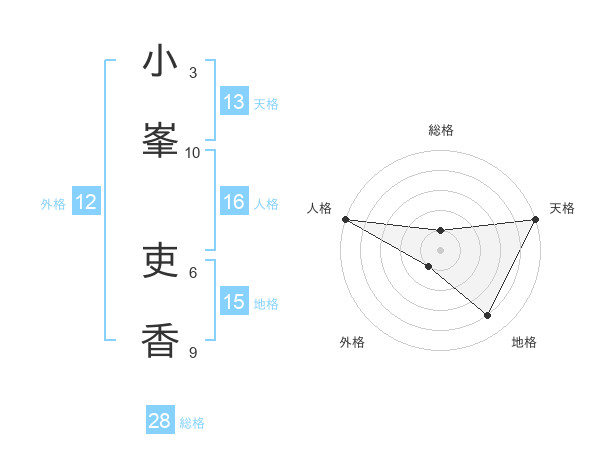 小峯 吏香さんの天格は13画の5点!