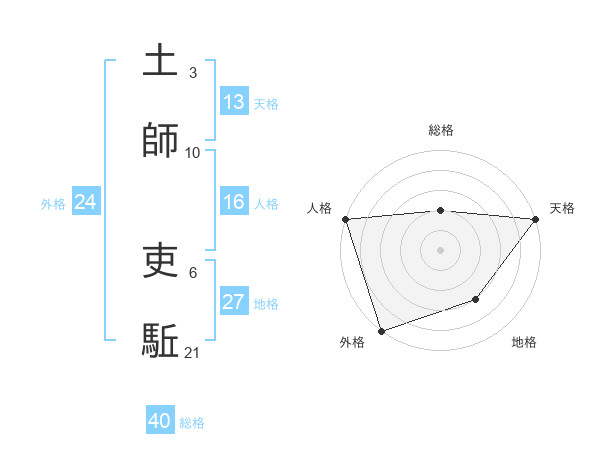 土師 吏駈さんの外格は24画の5点!