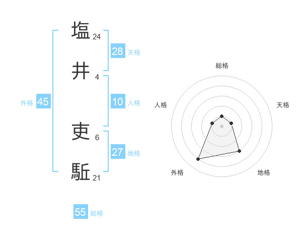 塩井 吏駈さんの総格は55画の1点!