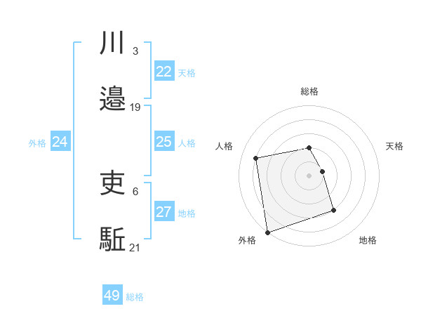 川邉 吏駈さんを姓名の画数から五運を鑑定