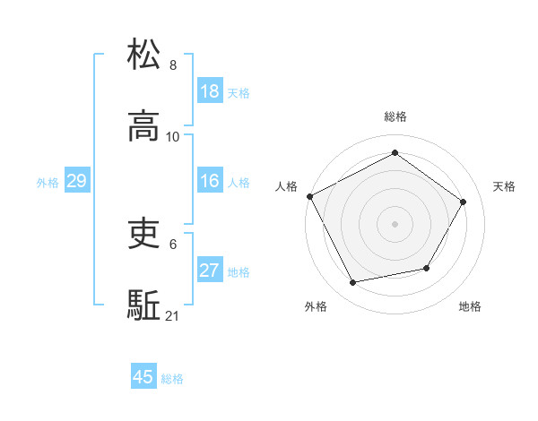 松高 吏駈さんを姓名の画数から五運を鑑定