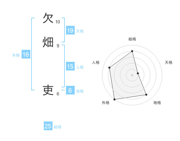 欠畑 吏さんの天格は19画の1点!