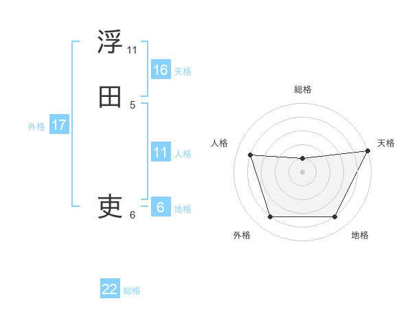 浮田 吏さんの天格は16画の5点!