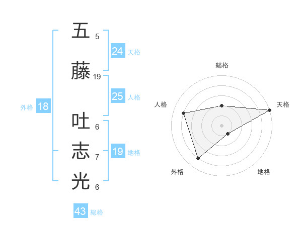五藤 吐志光さんを姓名の画数から五運を鑑定
