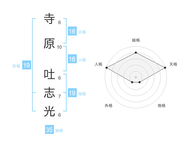 寺原 吐志光さんの人格は16画の5点!