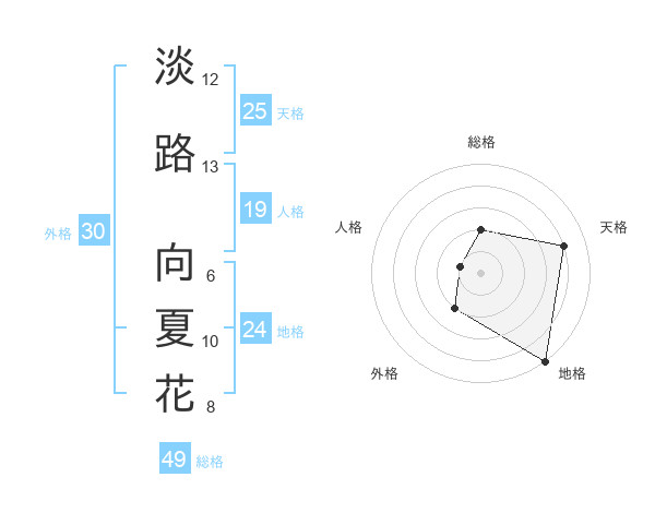 淡路 向夏花さんを姓名の画数から五運を鑑定