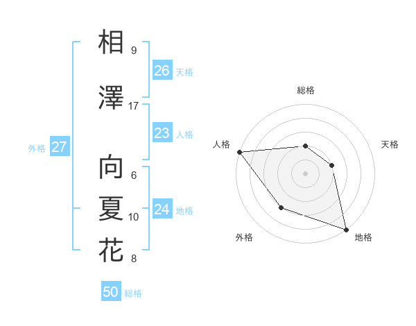 相澤 向夏花さんを姓名の画数から五運を鑑定