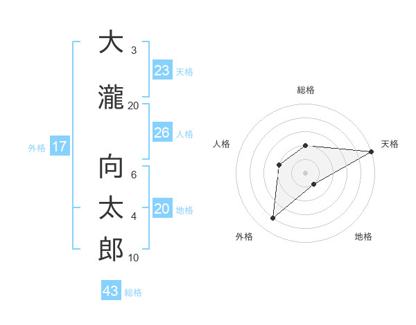 大瀧 向太郎さんの天格は23画の5点!